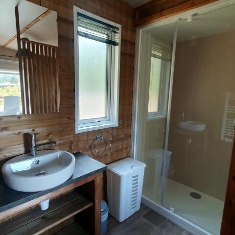 - Badezimmer: Dusche und Waschbecken, mit separater Toilette.