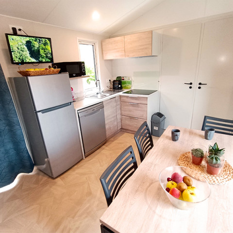 Opt for a unique stay at Green Village, where the Havana lodges combine comfort and immersion in nature. Ideal for a green and refreshing holiday, this lodge is a perfect alternative to the mobile home, while offering full amenities. Located close to the Atlantic Ocean, it can accommodate up to 5 people on 23 m² with 2 bedrooms, a fully equipped kitchen, and a living area. Its covered terrace allows you to fully enjoy the surrounding natural setting for an eco-friendly and nature-filled stay in Bassin d'Arcachon.